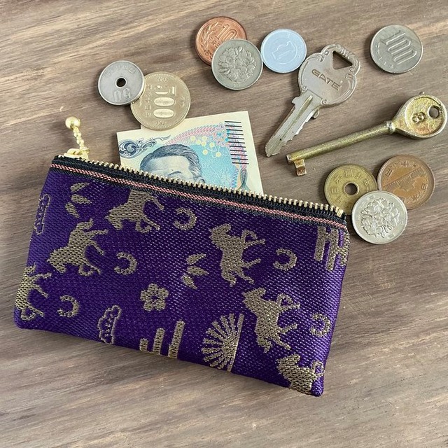 【雪輪文様】畳縁 ぺたんこ ミニポーチ カードケース 数珠入れ 小銭入れ 雪 和柄 伝統 紫