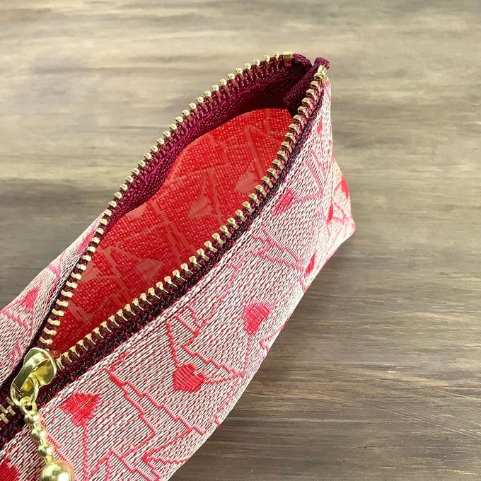 心を込めて書いたラブレター柄の畳縁で作ったペンケースです。