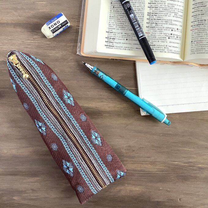 珍しいプロバンス風の模様が織り込まれた畳縁で作ったペンケースです。
