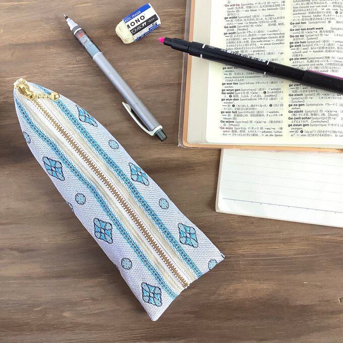 珍しいプロバンス風の模様が織り込まれた畳縁で作ったペンケースです。
