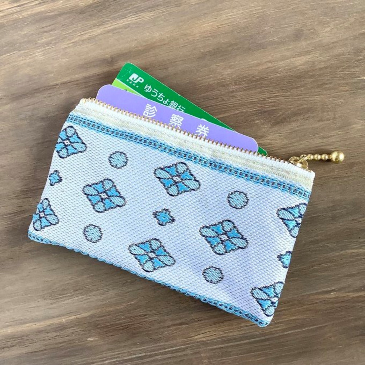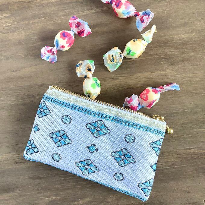 珍しいプロバンス風の模様が織り込まれた畳縁で作ったミニポーチです。
