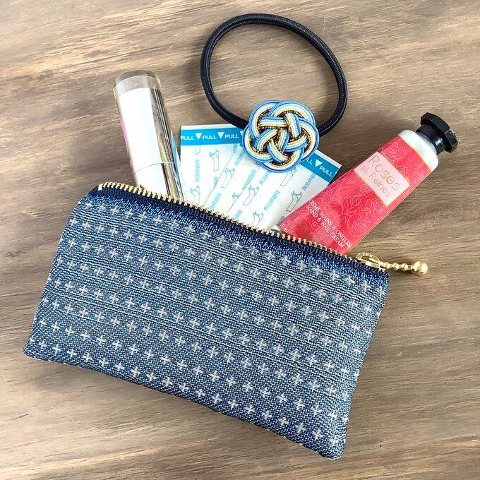 シンプルシックなクロス柄の畳縁で作ったミニポーチです。