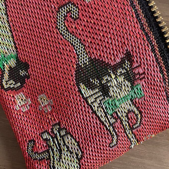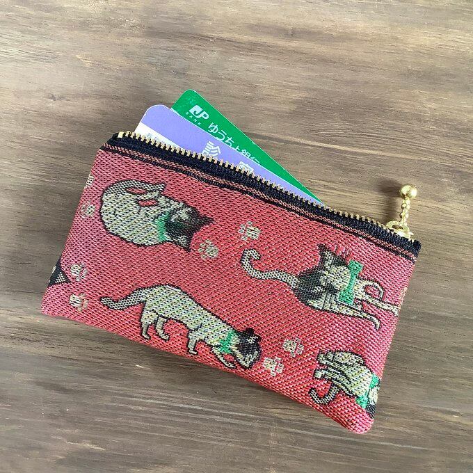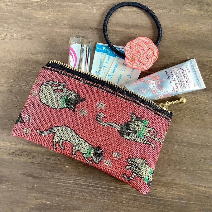 大人気の猫柄の畳縁で作ったミニポーチです。
