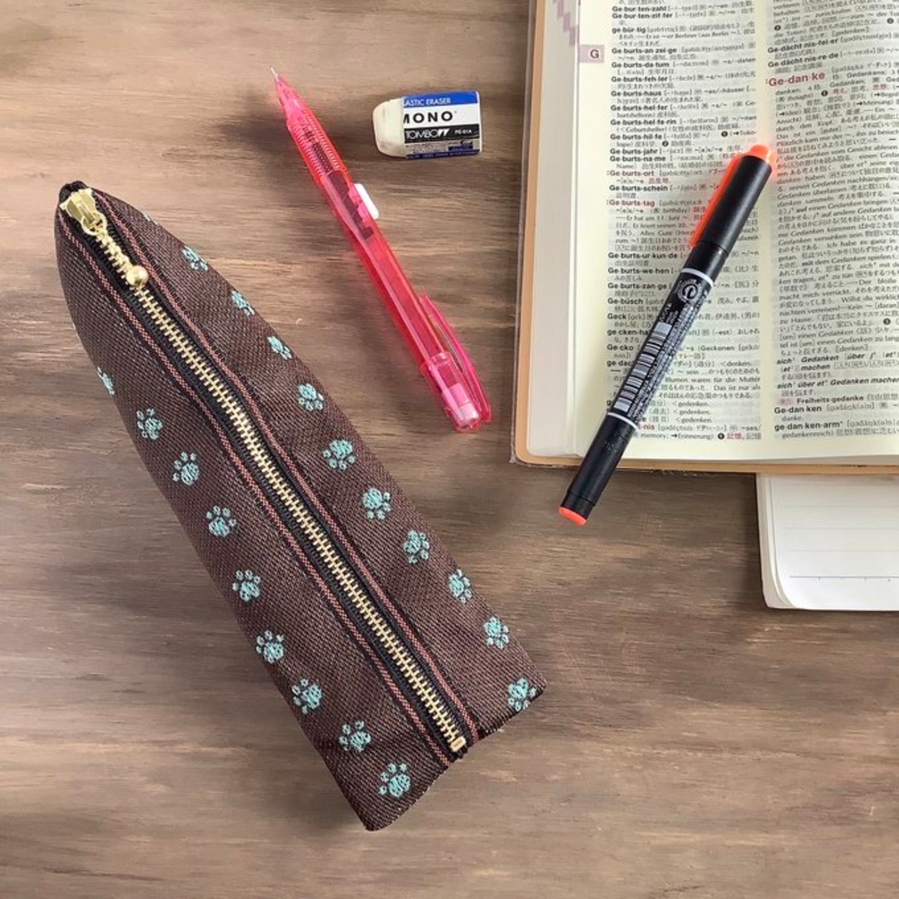 人気の猫や犬の足跡柄が可愛い畳縁で作ったペンケースです。