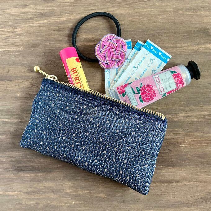 そんな冬の日の空を思わせるような畳縁で作ったミニポーチです。