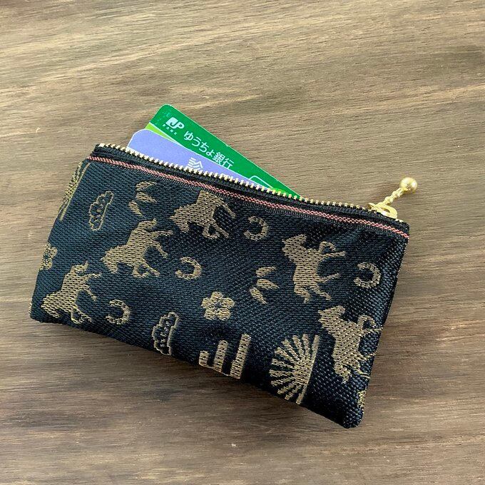 縁起物や日本の伝統柄が賑やかに金糸で織り込まれた