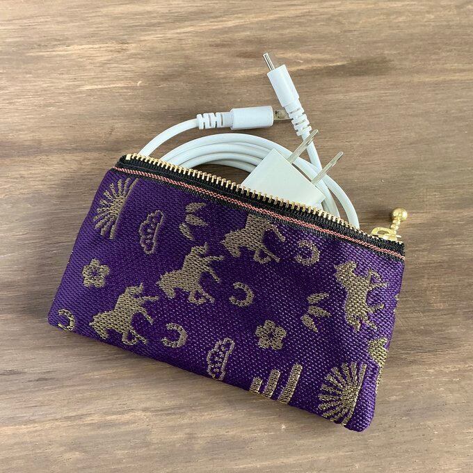 縁起物や日本の伝統柄が賑やかに金糸で織り込まれた