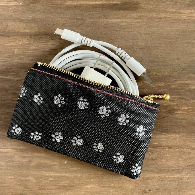 和風でカワイイ、ワンニャンな足跡柄の畳のヘリで作ったミニポーチです。