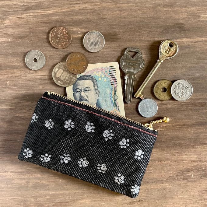 【足あと】畳縁 ぺたんこ ミニポーチ カードケース 小銭入れ 肉球 白 黒 犬 猫