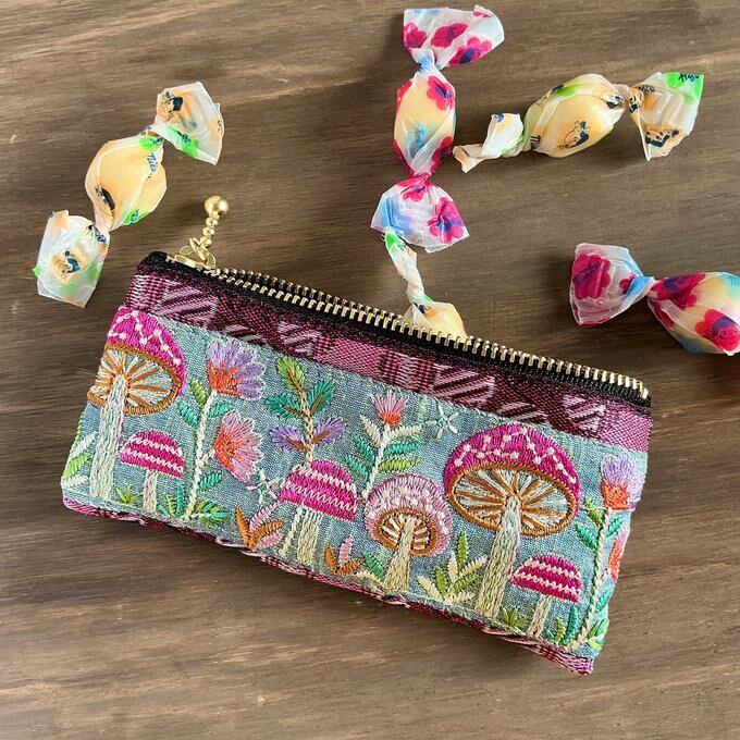 畳縁/和柄/日本/伝統/着物/母の日/父の日/敬老の日/入学/畳のヘリ/畳のへり/畳へり/刺繍/刺繍リボン/インド/インド刺繍/サリテープ/インド刺繍テープ/手縫い/個性的/大人可愛い/キュート/キノコ/きのこ/ベニテングダケ/童話/ファンタジー