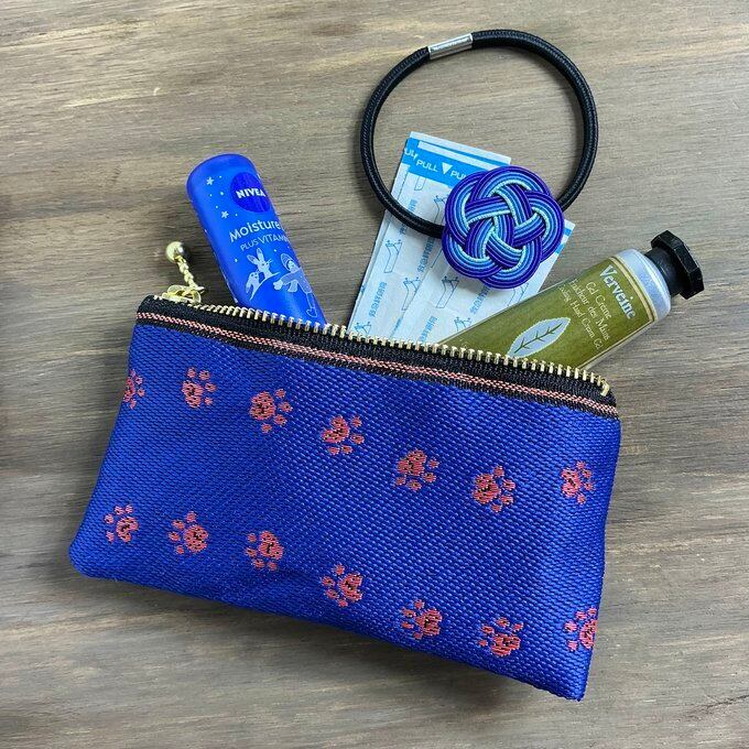 人気の猫や犬の足跡柄が可愛い畳縁で作ったペンケースです。