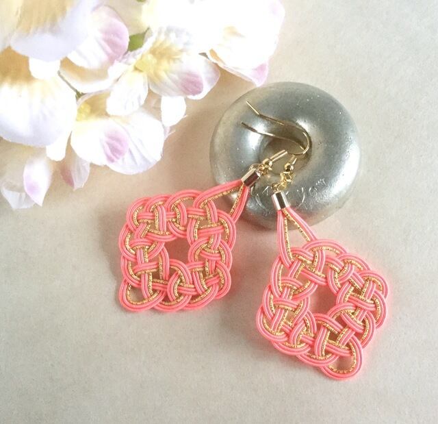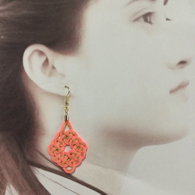 水引で一つずつ丁寧に作った、オリエンタルな雰囲気のピアスです。