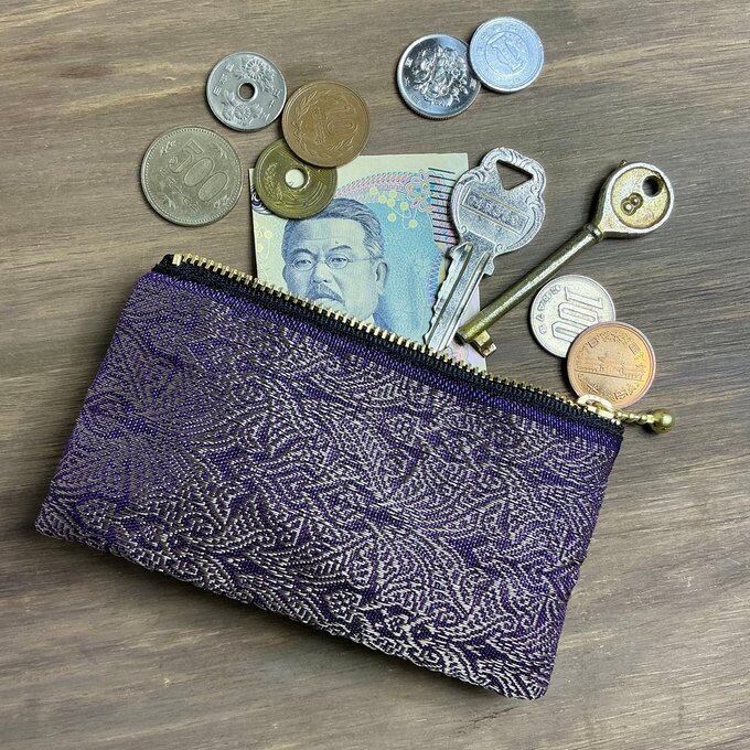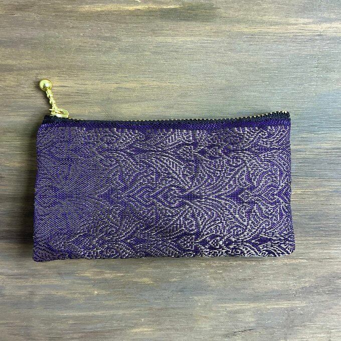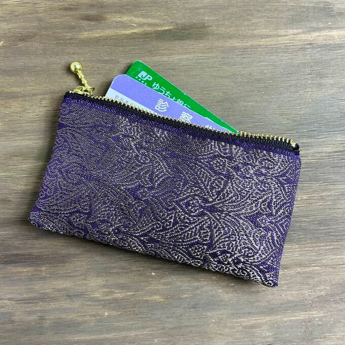 【エスニック】畳縁 ぺたんこ ミニポーチ カードケース 小銭入れ オリエンタル 紫 ゴールド