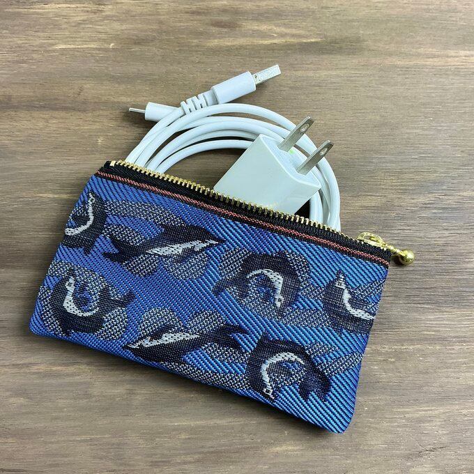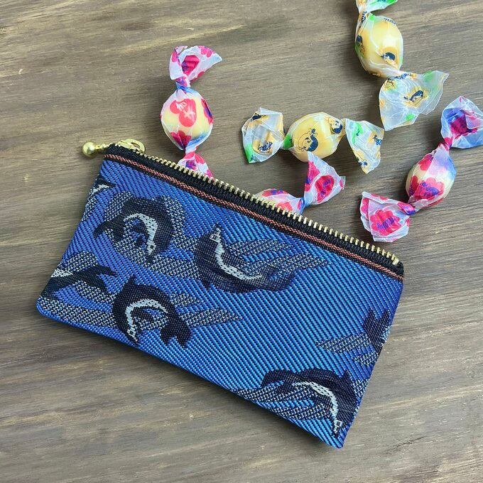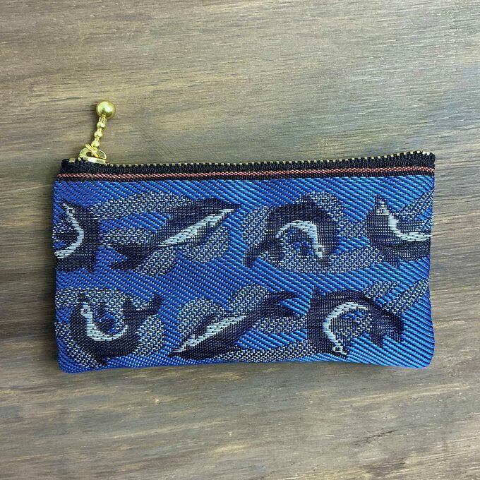 元気なイルカ柄の畳縁で作ったミニポーチです。