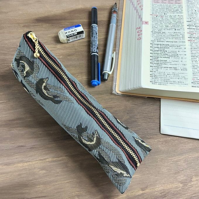 元気なイルカ柄の畳縁で作ったペンケースです。