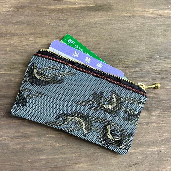 【イルカ】畳縁 ぺたんこ ミニポーチ 小銭入れ カードケース グレー 魚 海 いるか マリン