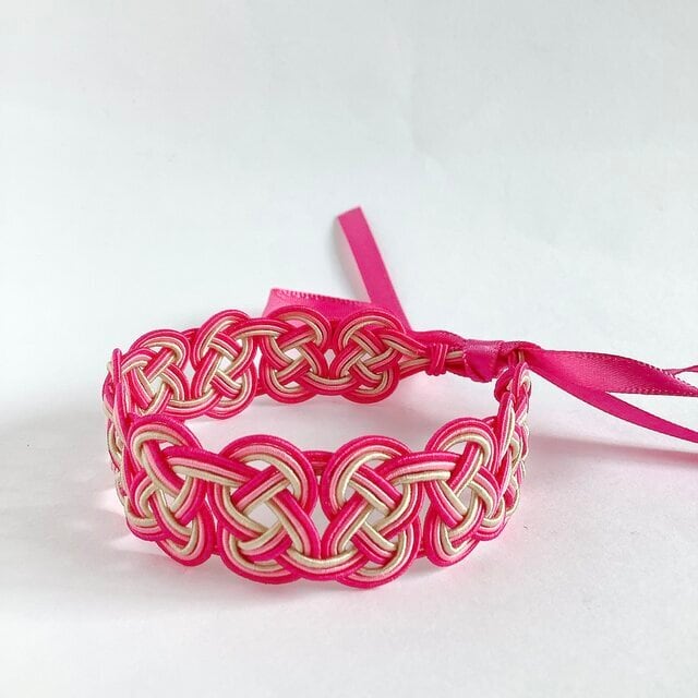 梅や桃のような美しいピンク系の水引で作った首輪です。