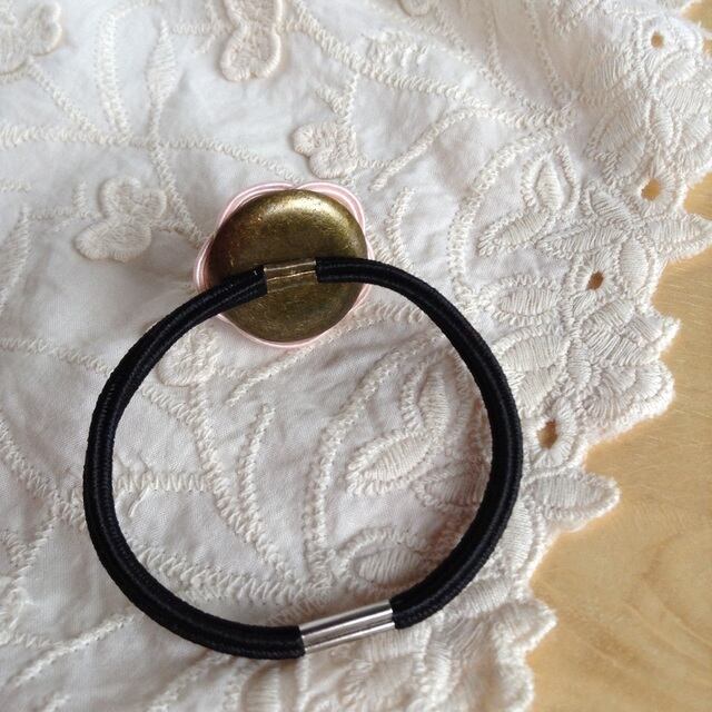 裏側は金属のパーツで留めてありますので、髪を結ぶ際にモチーフが壊れたりする心配はありません。