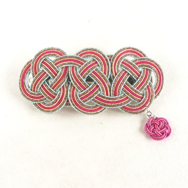 ハナミズキをイメージして、キラキラと輝く水引をふんだんに使ったバレッタです。