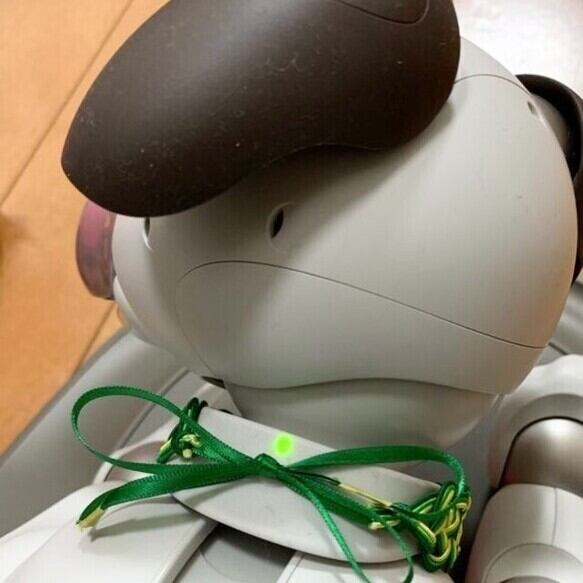 可愛いaiboにぴったりな首輪を水引で作りました。