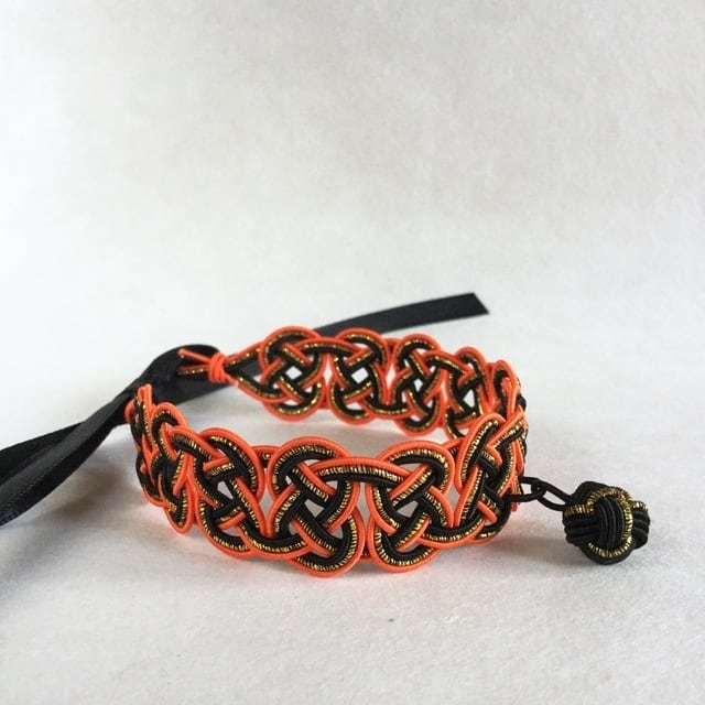 ハロウィンカラーの水引で作った、玉付の首輪です。