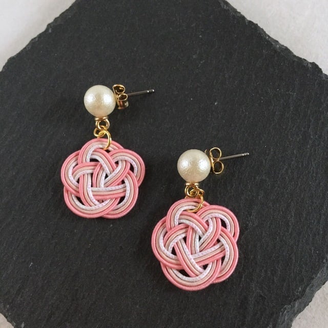 コットンパール風の玉を合わせた、愛らしいピアスです。