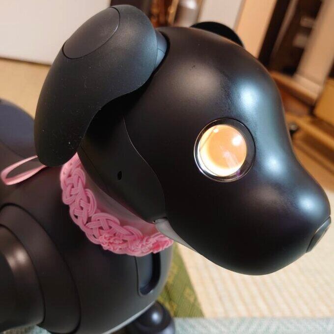 可愛いaiboにぴったりな首輪を水引で作りました。