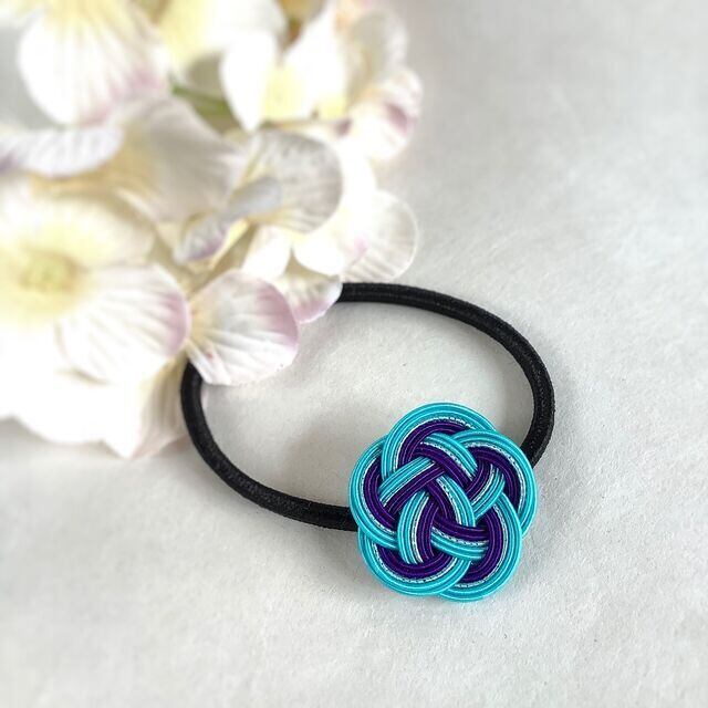 爽やかな夏空のような、美しいブルー系の水引で作ったヘアゴムです。