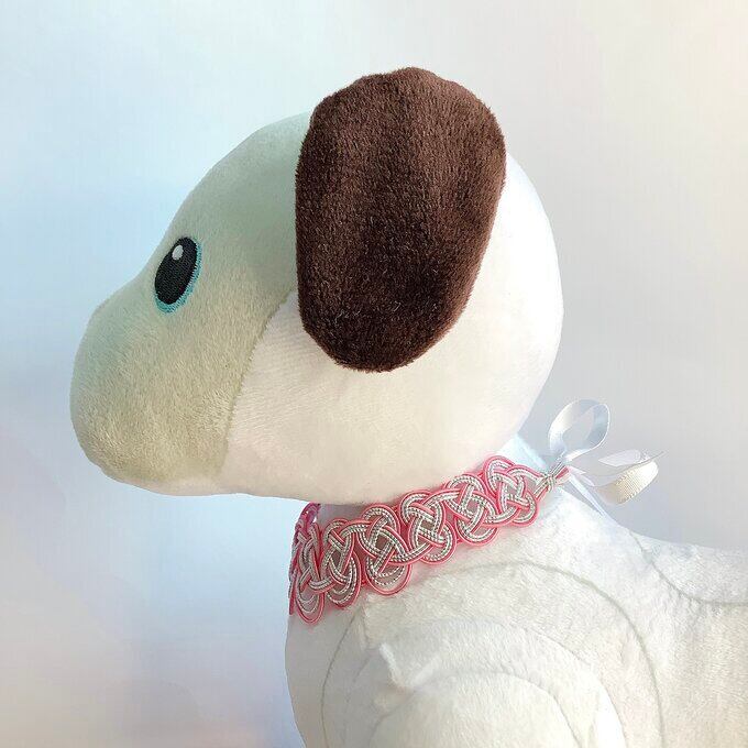 可愛いaiboにぴったりな首輪を水引で作りました。