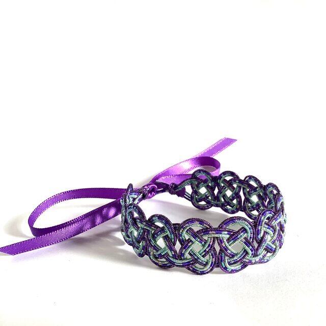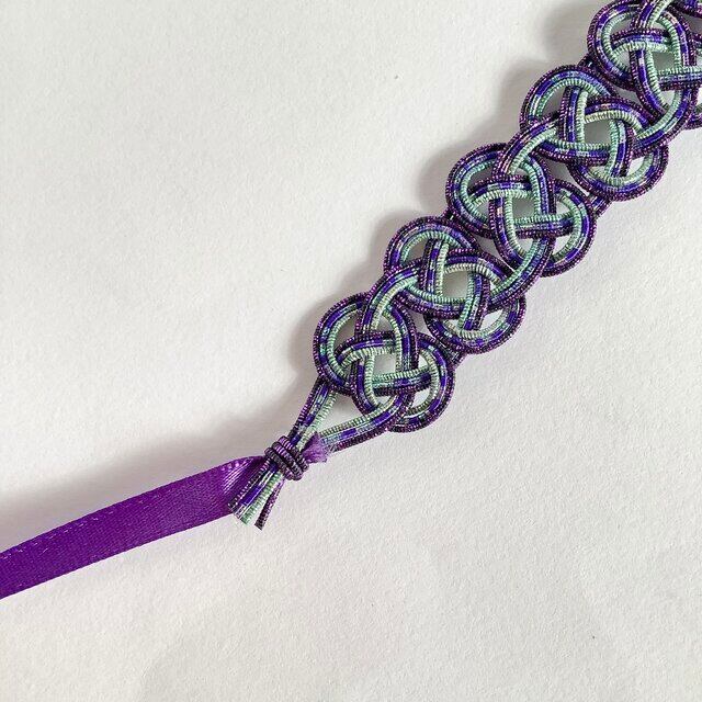濃いブルー系のキラキラの水引を集めて首輪を作りました。
