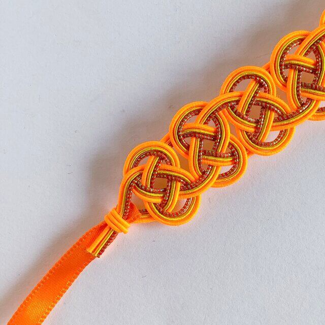明るいオレンジ系の水引を組み合わせて作った首輪です。