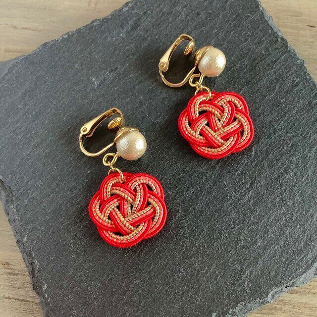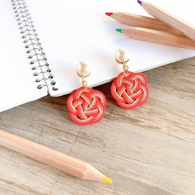 赤色がさして照り輝くような色合いの水引で作ったモチーフに
