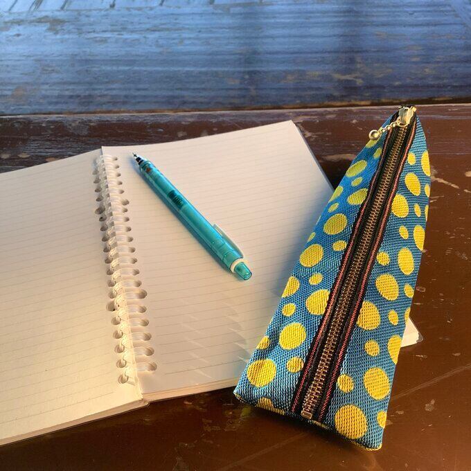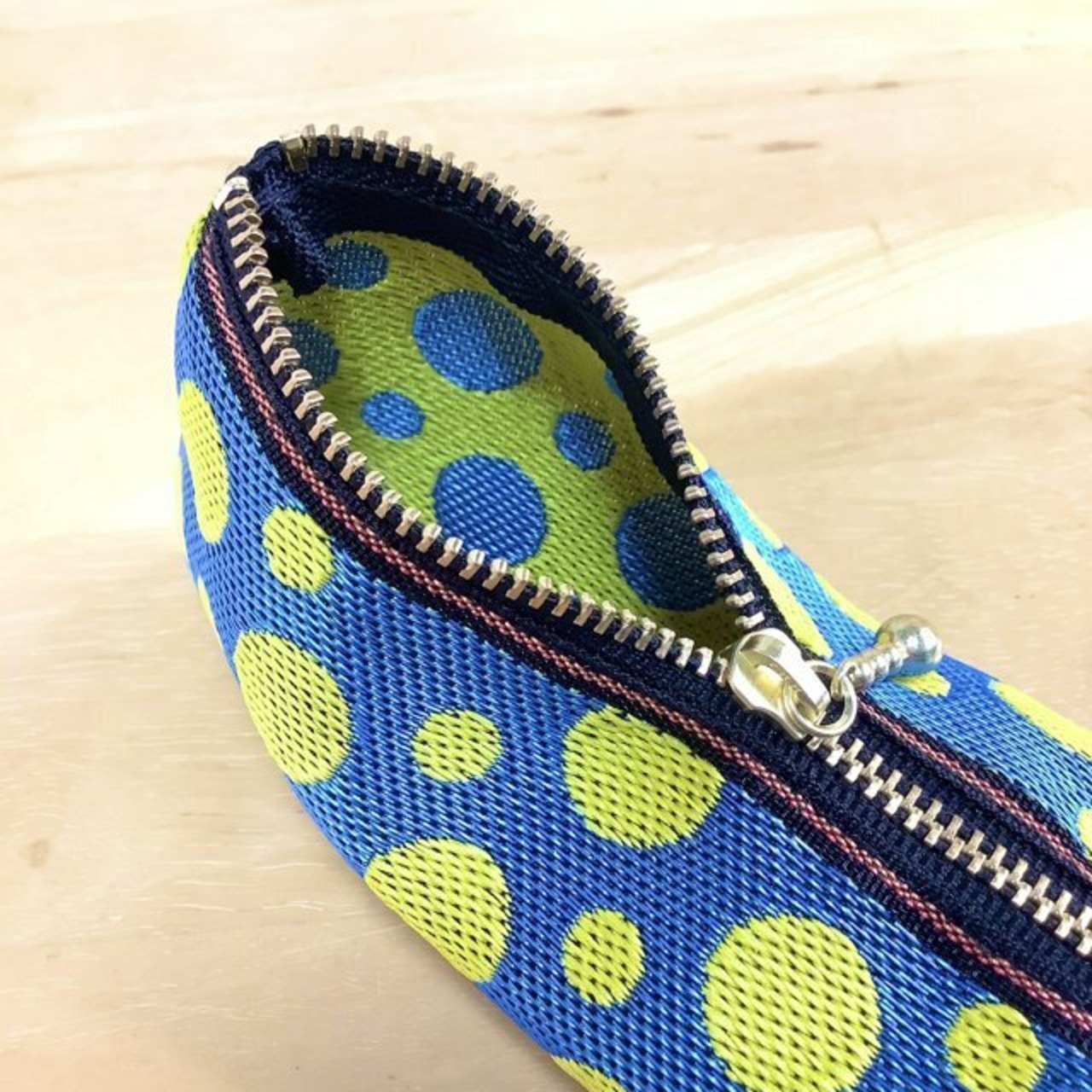 レモンイエローの水玉模様が涼しげなペンケースです。