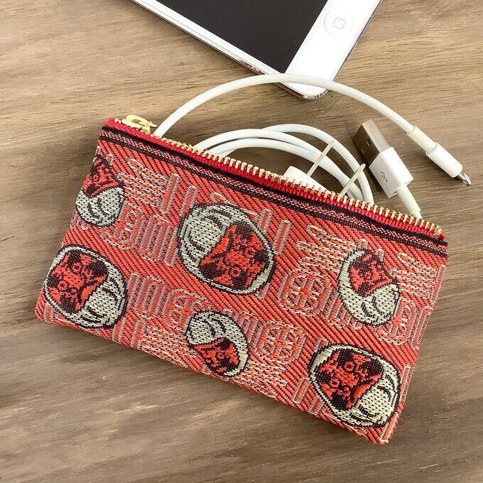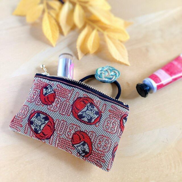 縁起のいいダルマさんの柄の畳縁で作ったミニポーチです。