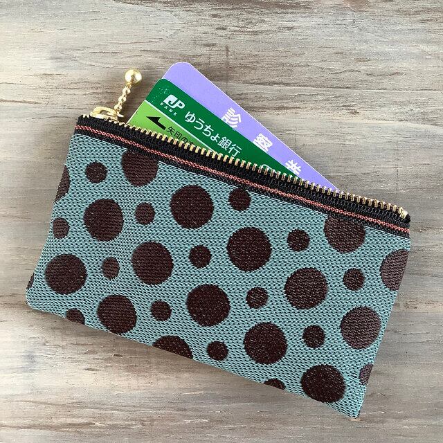 人気のミント×チョコレートカラーのドットの畳縁で作ったミニポーチです。