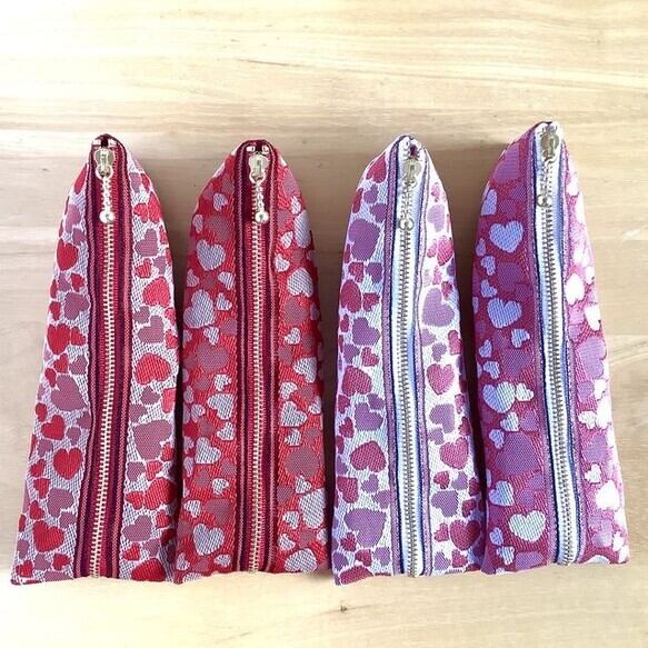 素敵に可愛い、ハート柄の畳縁で作ったペンケースです。