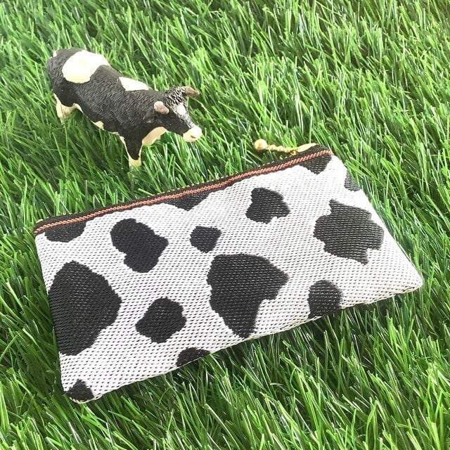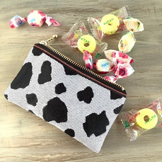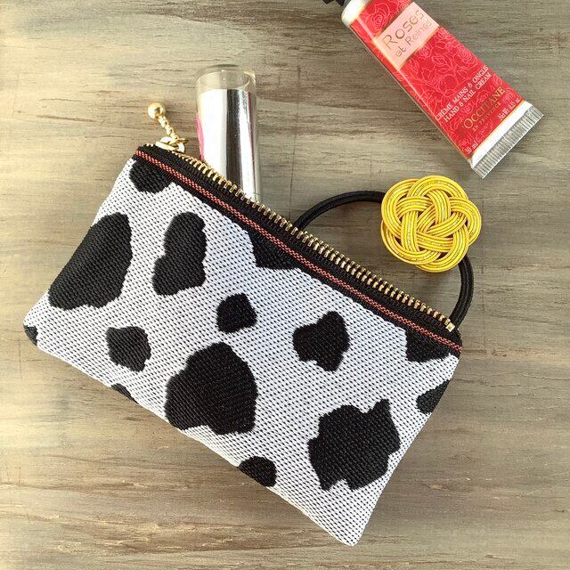 ユニークなホルスタイン柄の畳縁で作ったミニポーチです。