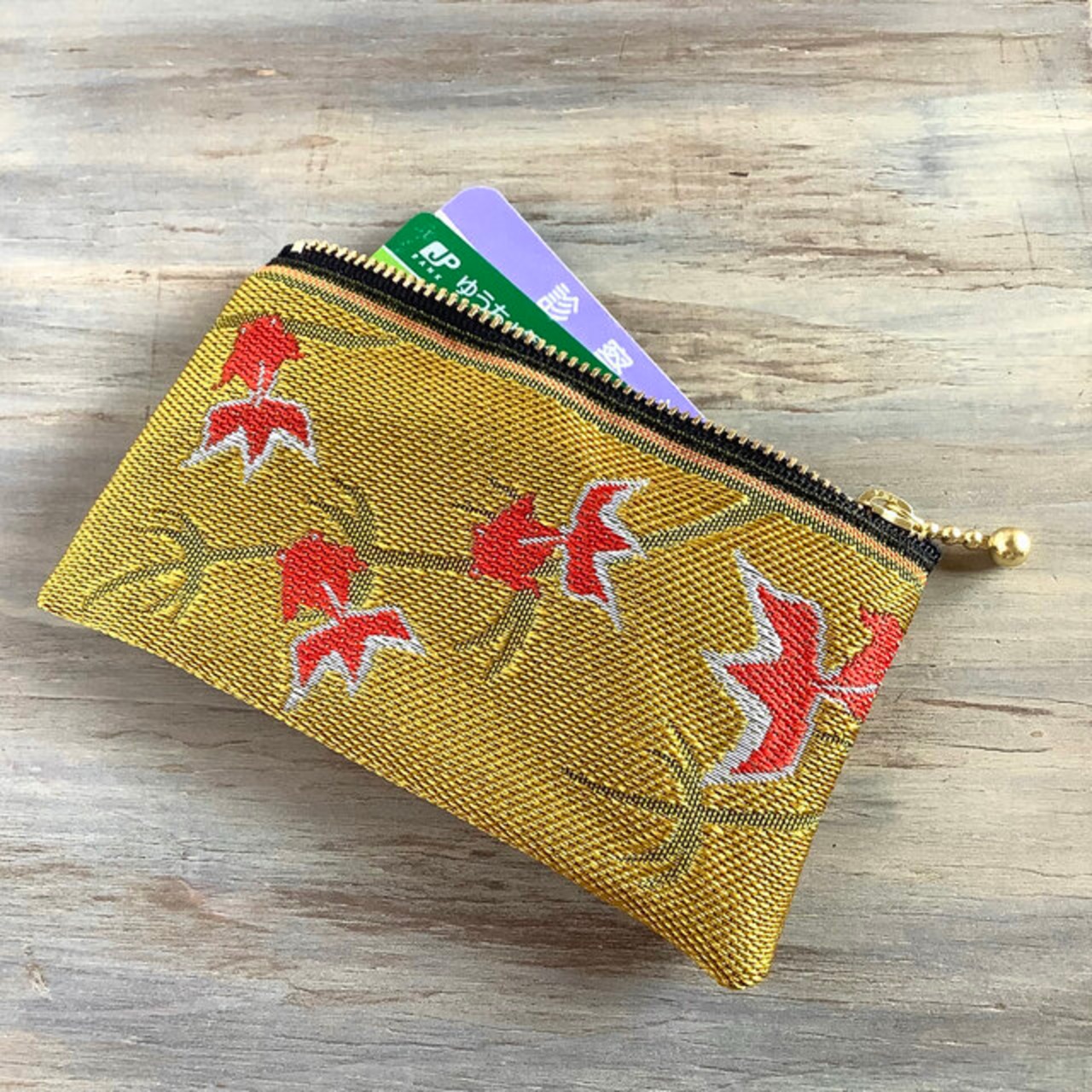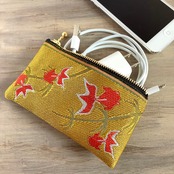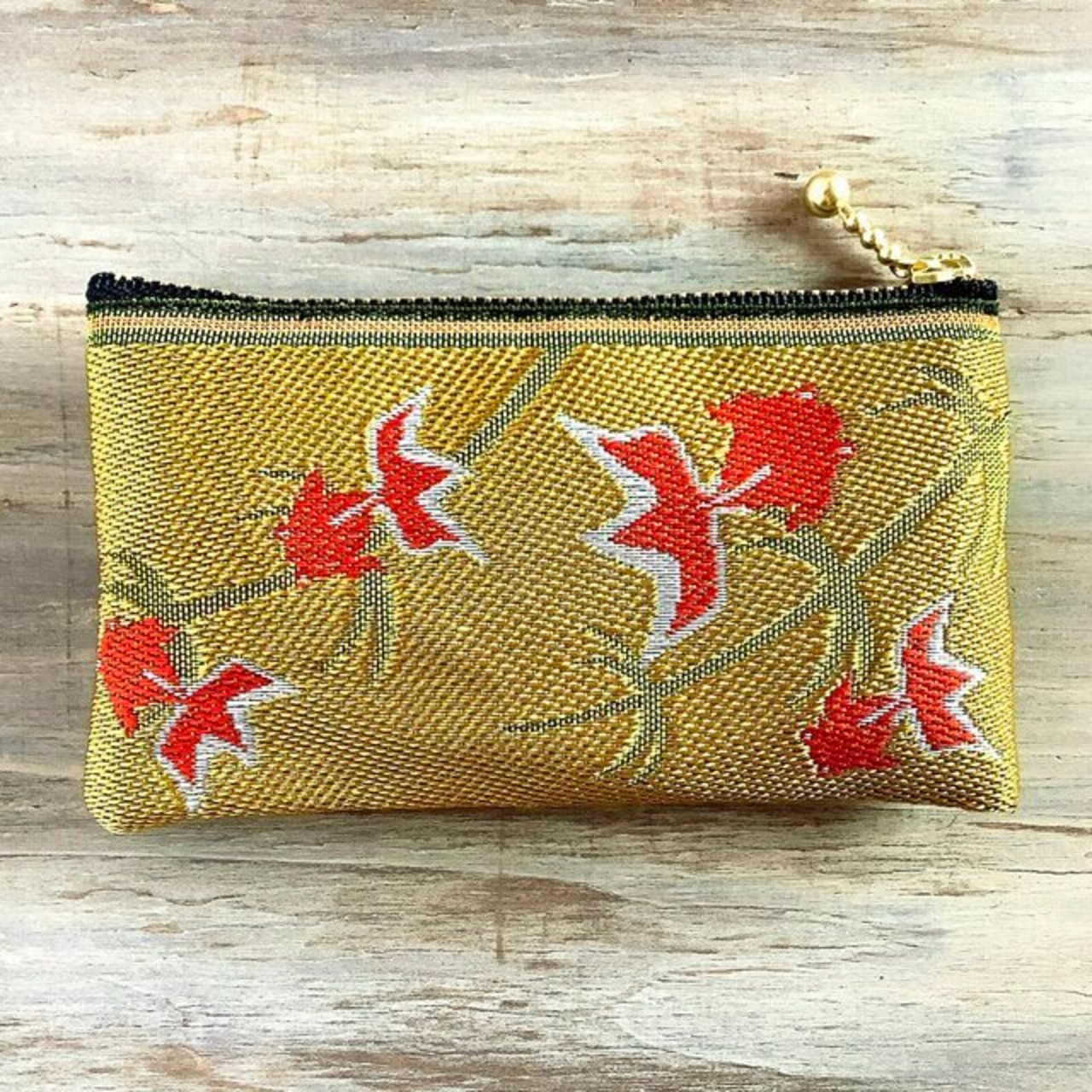 いかにも日本らしい、金魚柄の畳縁で作ったミニポーチです。