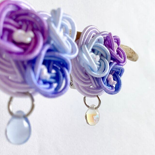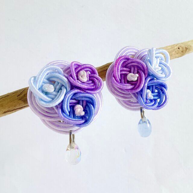 紫陽花をイメージして、オリジナルで染めた水引を使って作りました。
