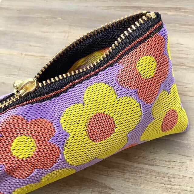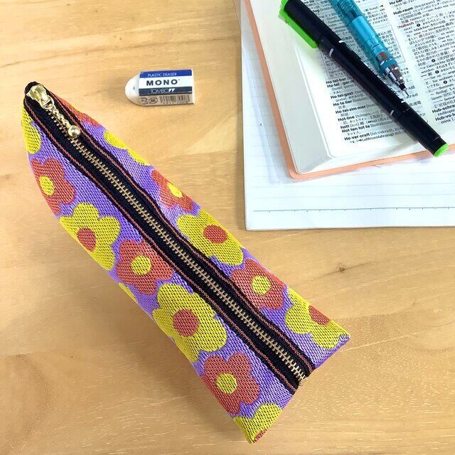 レトロポップな可愛い花柄の畳縁で作ったペンケースです。