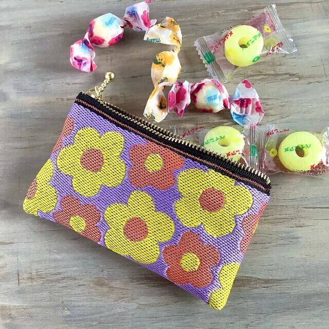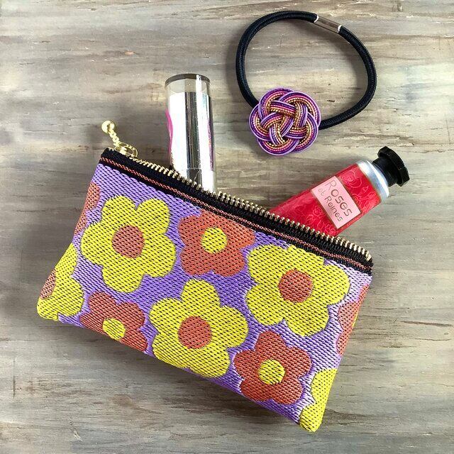レトロポップな可愛い花柄の畳縁で作ったミニポーチです。