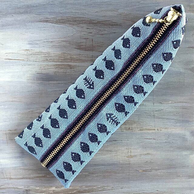 お魚と魚の骨柄の畳縁で作ったペンケースです。