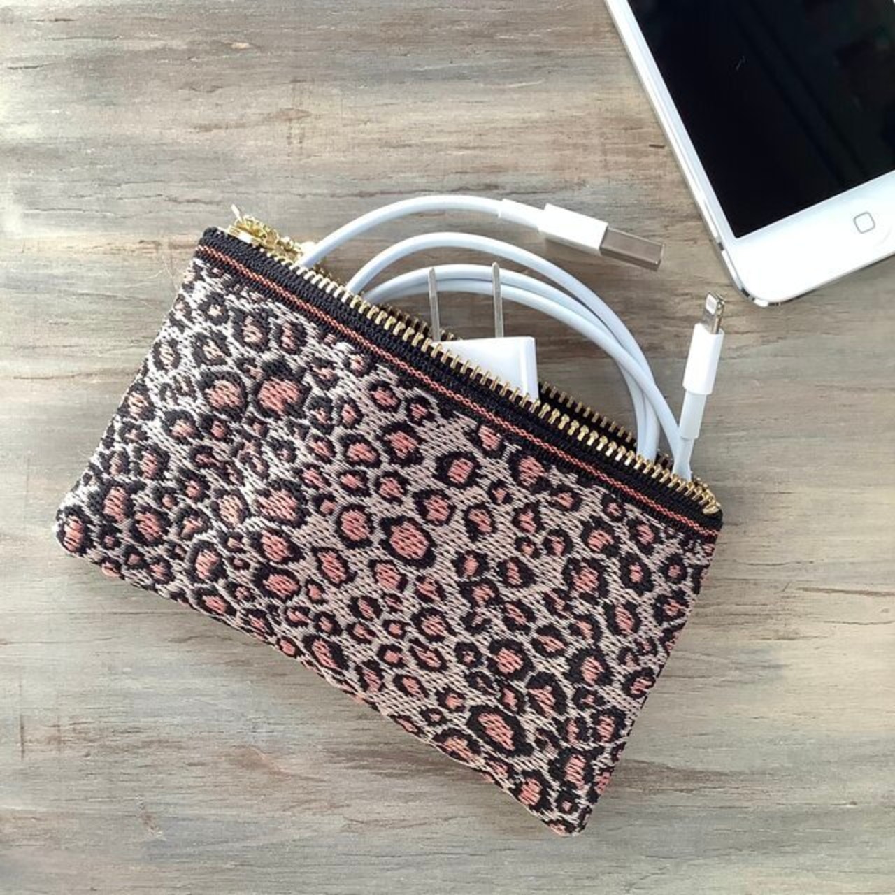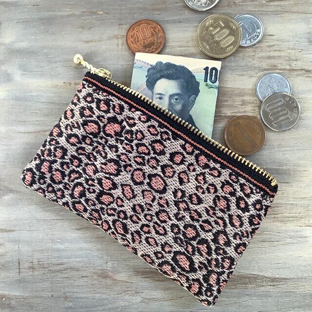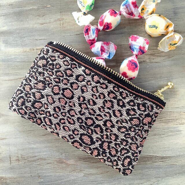 個性的なヒョウ柄の畳縁で作ったミニポーチです。