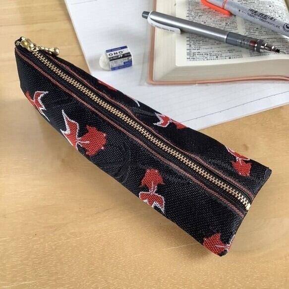 いかにも日本らしい、金魚柄の畳縁で作ったミニポーチです。