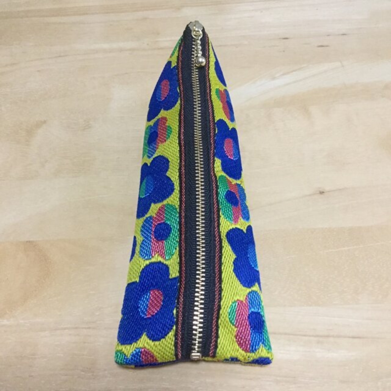 レトロでポップな明るい花柄の畳縁で作ったペンケースです