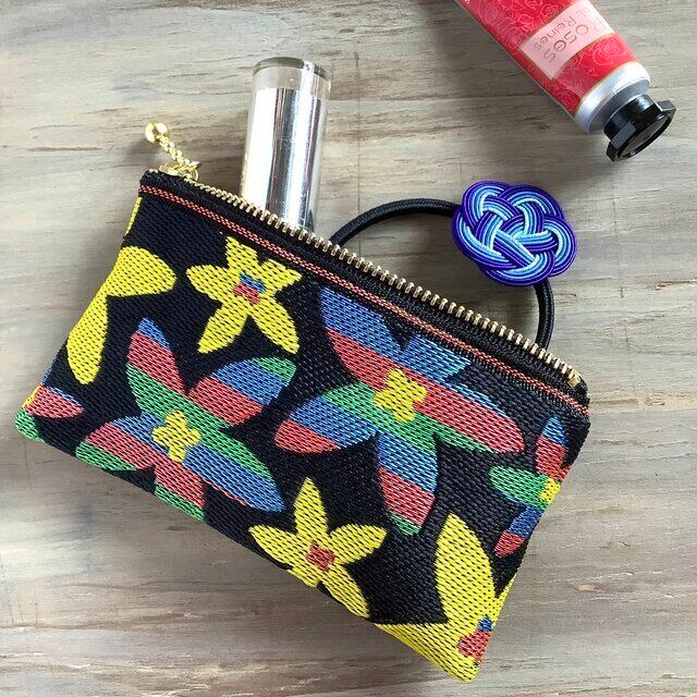 レトロで個性的な柄の畳縁で作ったミニポーチです。