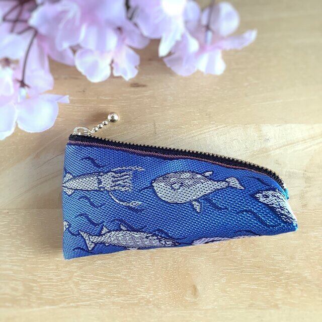 色々な種類の魚介類柄の畳縁で作ったミニポーチです。