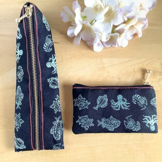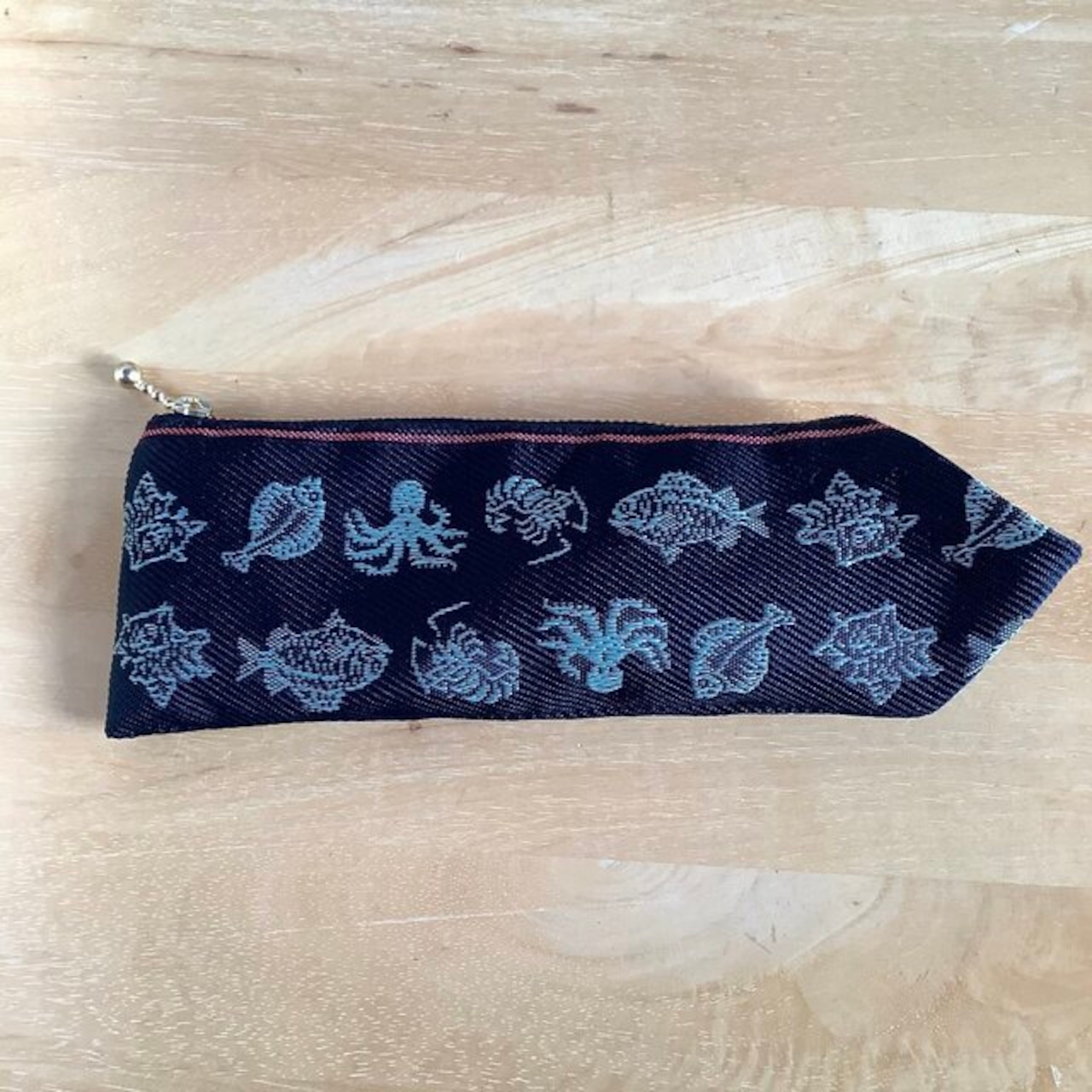 色々な種類の魚介類柄の畳縁で作ったユニークなペンケースです。