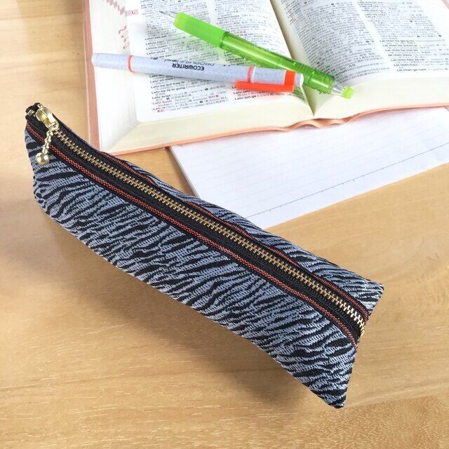 ユニークでスタイリッシュな、ゼブラ柄の畳縁で作ったペンケースです。