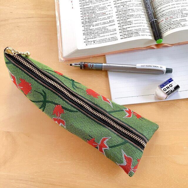いかにも日本らしい、金魚柄の畳縁で作ったペンケースです。